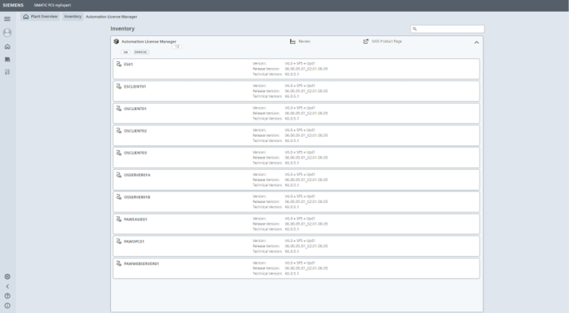- Detailed information on each plant item (e.g., version information and project path) is offered.